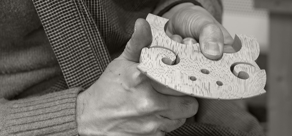 Originele instrumenten uit privé-collecties en musea dienen als voorbeeld voor zijn instrumenten. Zowel als directe inspiratie als om een idee te geven van vorm. Binnen deze gegevens ontwikkelt hij een eigen stijl.